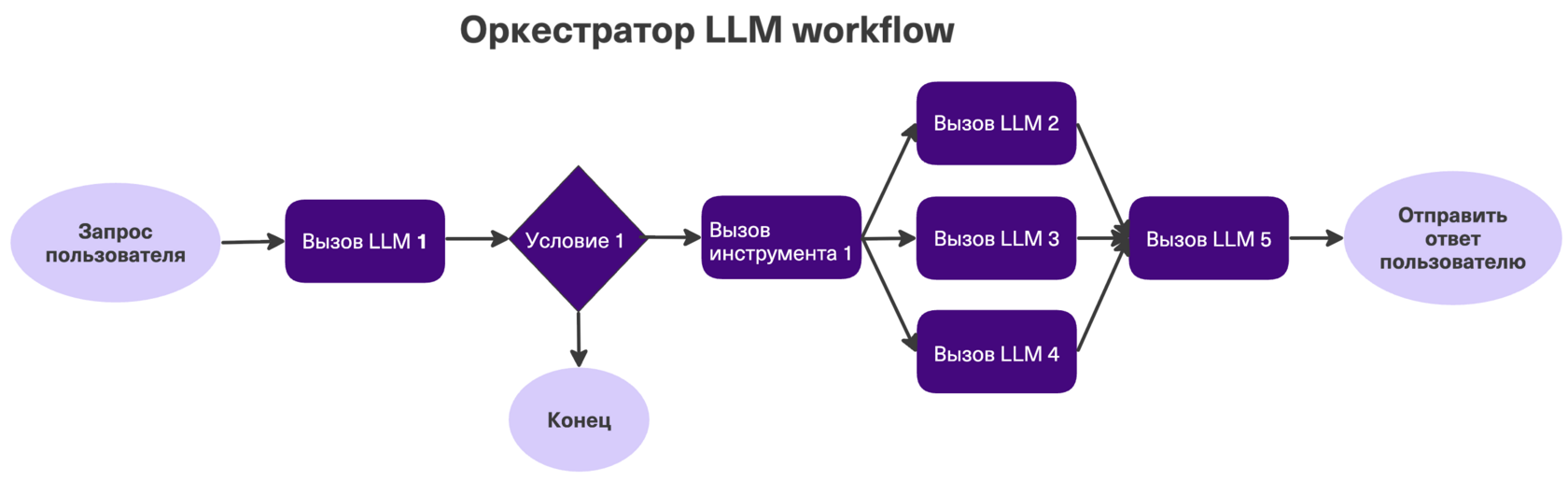 Самый надежный и распространенный вариант в продакшене. Порядок действий жестко задан разработчиком в коде. LLM здесь используется как функция внутри жесткого графа: например, суммаризует ответ, извлекает сущности или классифицирует тексты.